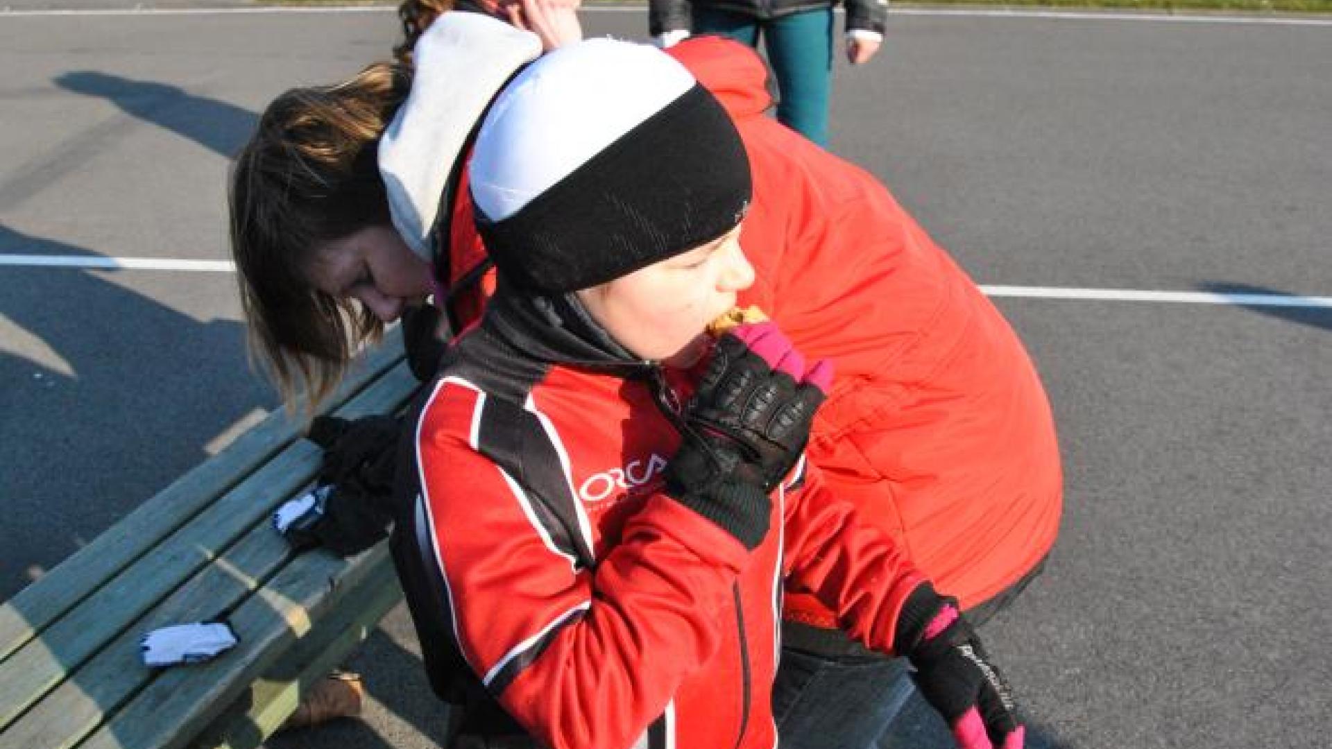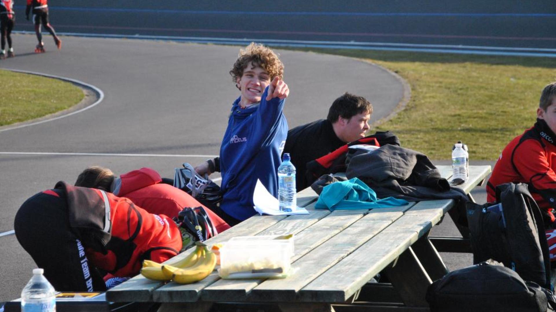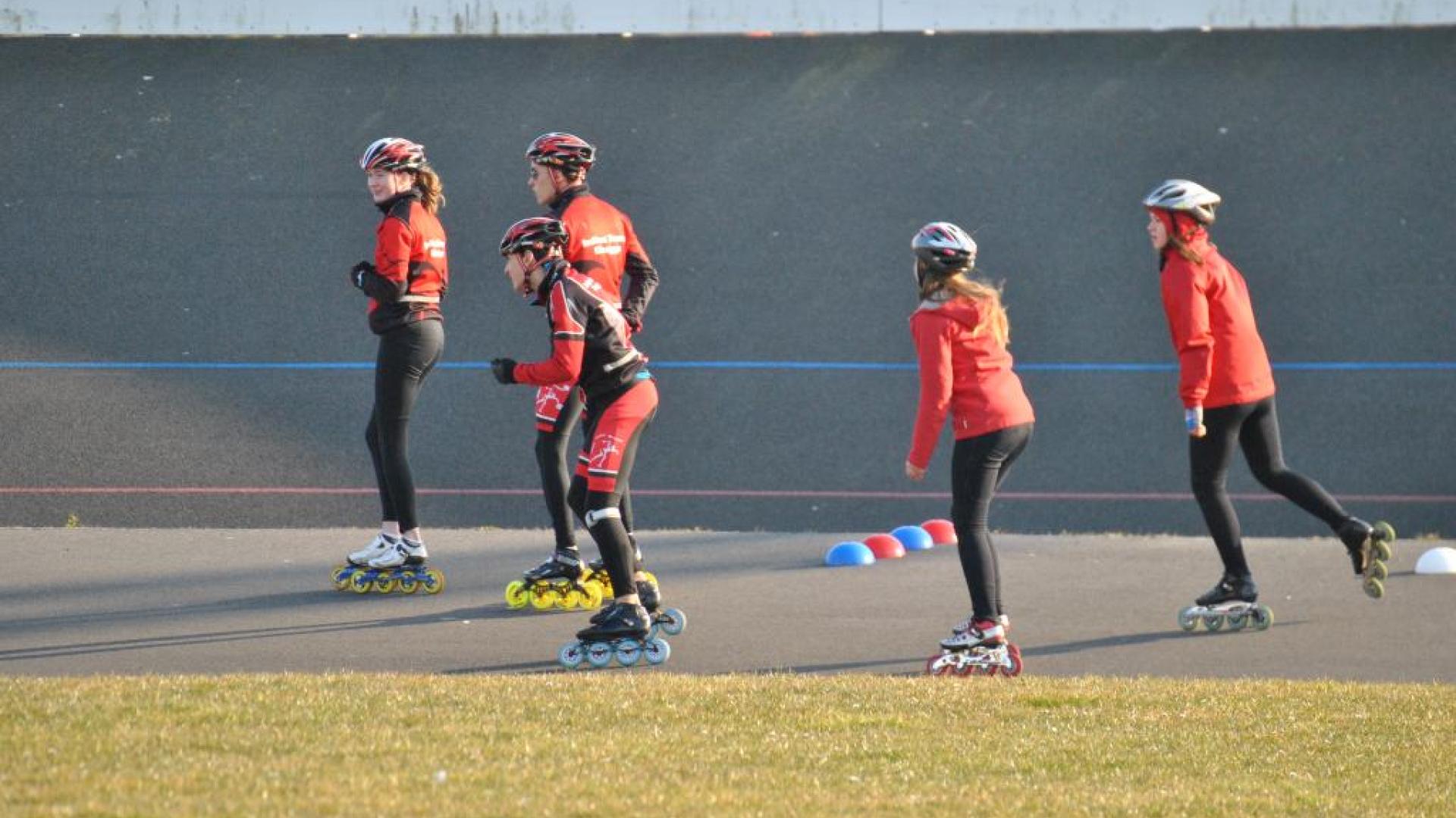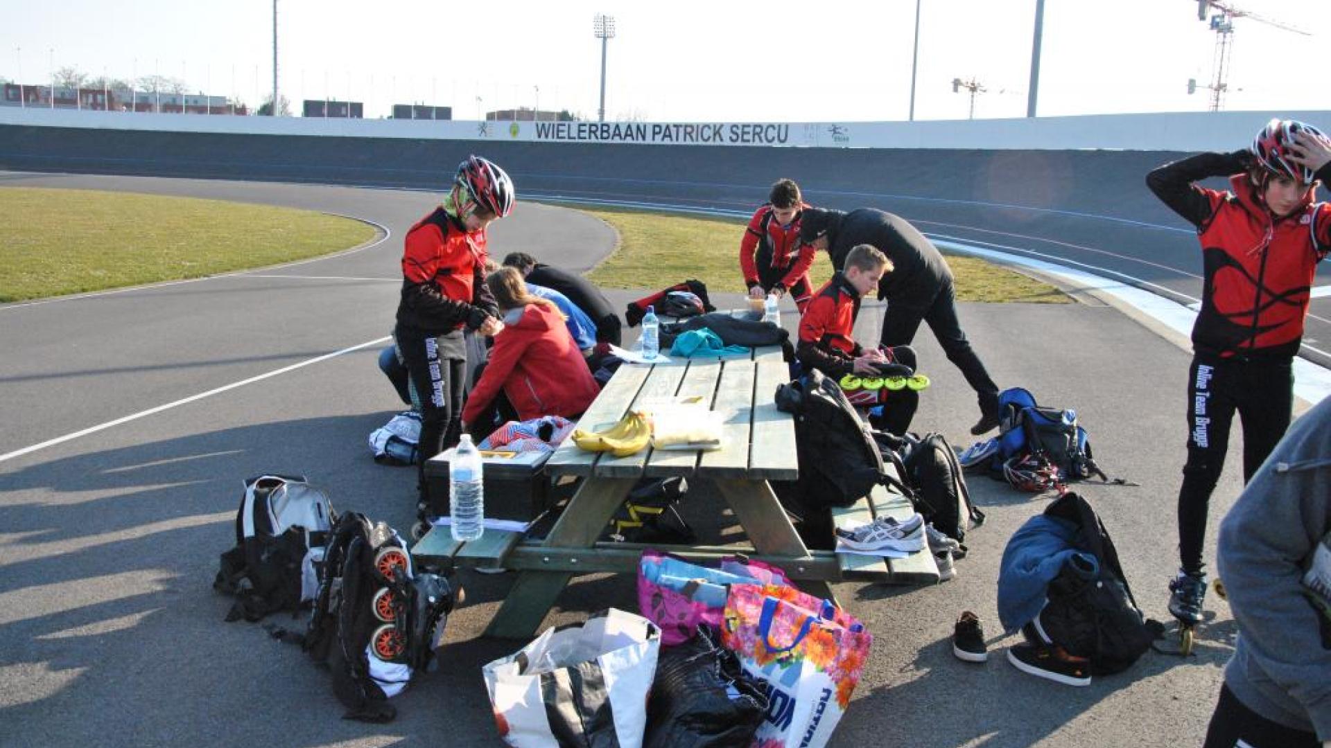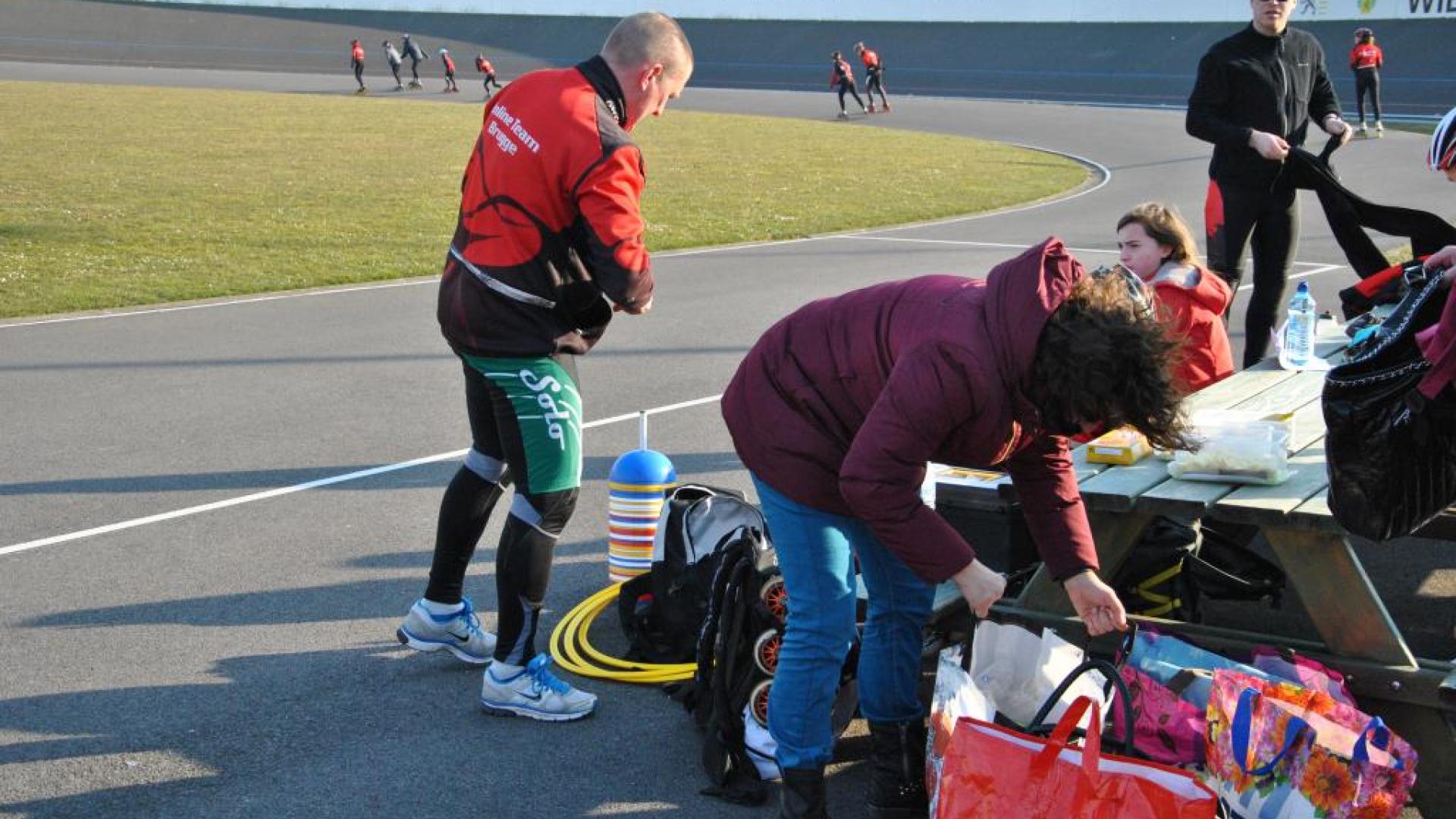 Om de dag te beginnen dan maar wat 'theorie' over de 'rechten en plichten' van de renner. Een noodzaak om te weten! Na zowat een klein uurtje konden alle atleten 'eindelijk' de skeelers aantrekken en hop hier begon het. Het verloop van de stage zal je deze week in beeld verder kunnen volgen.
