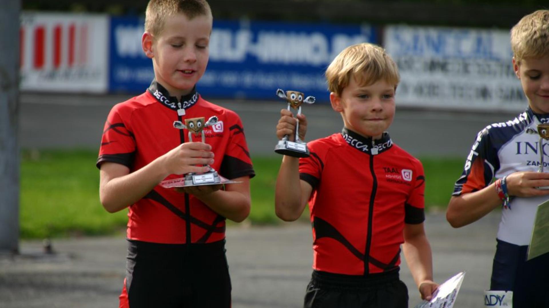 Al eens goed naar de foto gekeken! Twee stralende renners onder een schitterend zonnetje, met in hun hand een trofee!